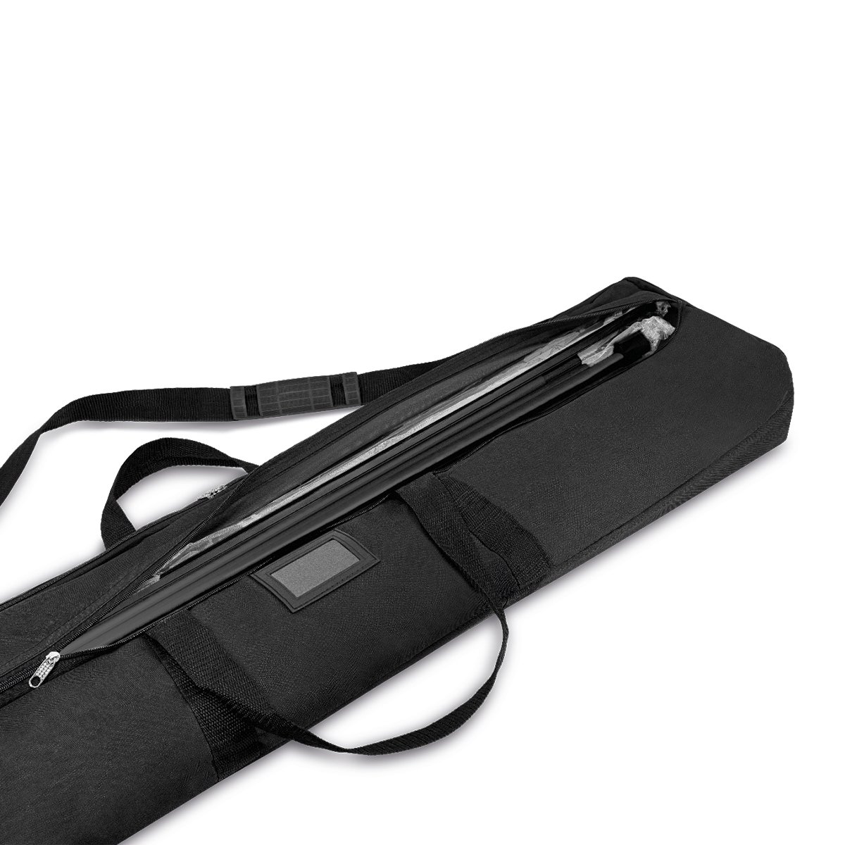 Kaseta wyposażona jest w listwę zatrzaskową „Express Clip" oraz taśmę 3M, które umożliwiają szybki i wygodny montaż wydruku, najczęściej realizowanego na materiale typu blackout. W zestawie znajdują się również dwa maszty, dzięki którym możliwe jest stabilne rozłożenie systemu i podniesienie jego górnej części.