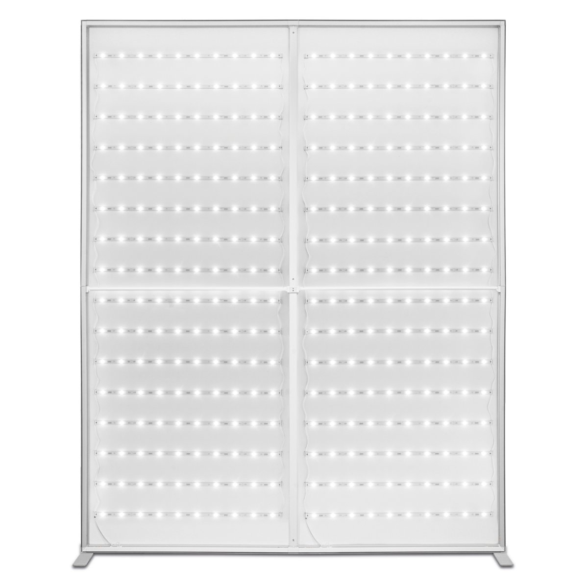 Zupełnie nie tracąc na jakości w porównaniu z innymi modelami, ścianka BACKLIGHT 200x250 prezentuje się godnie w eleganckiej srebrnej ramie (profil 6 cm), a wypełniająca ją jednostronna kurtyna ledowa zapewnia jednolite podświetlenie na całej powierzchni. Montaż całości można przeprowadzić zaledwie w kilka minut.