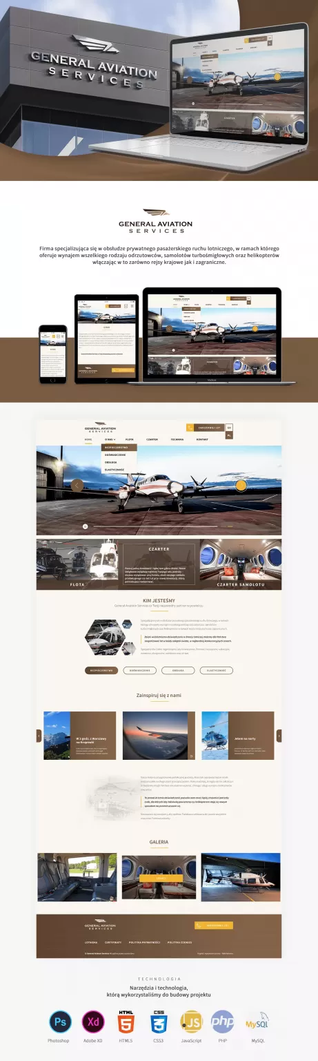 - Projekt przygotowany do standardu wyświetlania w różnych rozdzielczościach, strona responsywna. Stosujemy widoki na telefony, tablety, laptopy, komputery stacjonarne.