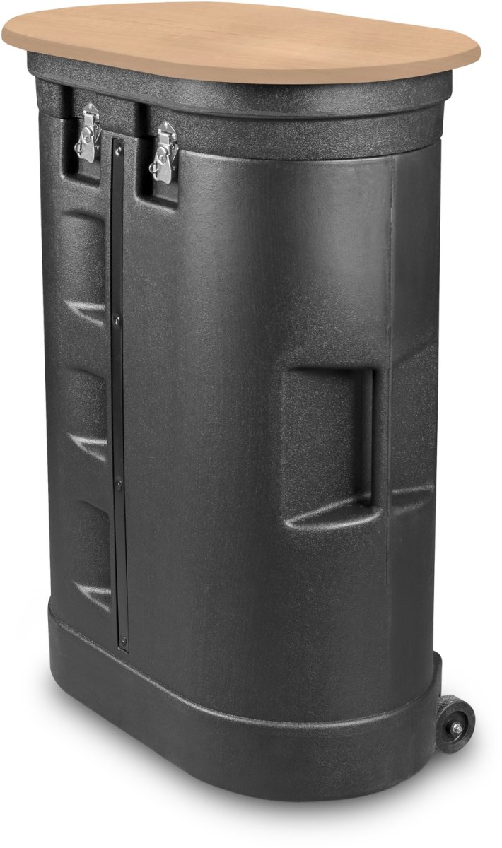 Blat z płyty HDF w kolorze naturalnego drewna, przeznaczony do ambonki reklamowej plastikowej na kółkach.
